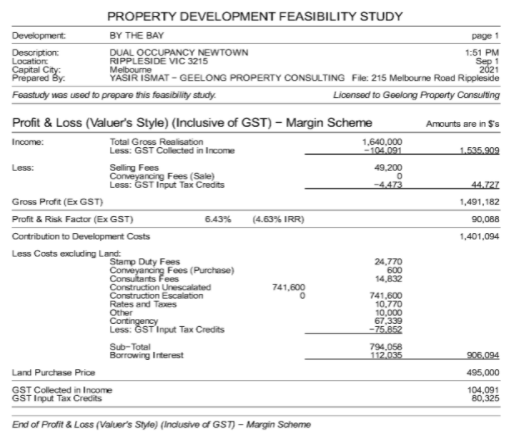 If you’re looking at a suburb where the purchase prices are around 600k – 700k and build a decent spec dual occupancy somewhere between that 700-800k level.